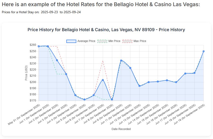 The dedicated page we create will display the hotel’s price fluctuations over time, allowing you to see seasonal patterns, demand peaks, and off-peak periods. - Future Stay Planning: